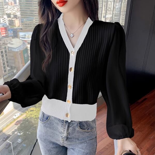 新しいスタイルのVネック長袖セーターセーターが登場しました!ボトムカーディガンとしても使え、スリムフィットのデザインがスタイルを引き締めます。シフォンスプライシングが華やかさをプラスし、Vネックの長袖シャツはニッチなファッションをお好きな方にぴったり。洗練されたデザインと快適な着心地を兼ね備えた、ファッショナブルな一枚です。