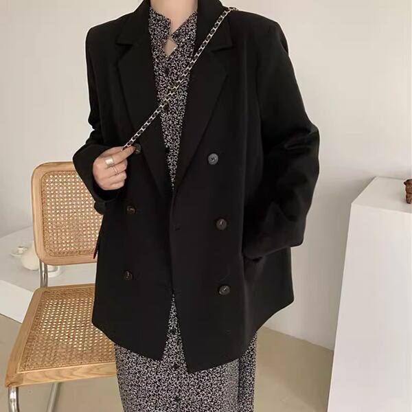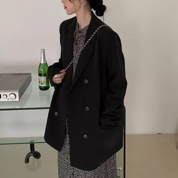 春、秋、冬の季節に対応し、韓国風のルーズファッションを楽しめる一着です。シンプル多用途なデザインが通勤や様々なシーンで活躍。ダブルブレストがトレンド感を演出し、ハイエンドでルーズカジュアルな雰囲気を醸し出します。ドレープ感が女性の美しさを引き立て、ニッチなファッションをお求めの方にぴったりの一着です。