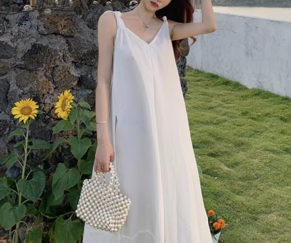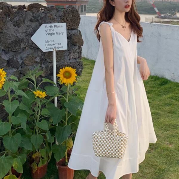 フレンチデザインサスペンダードレス レディース ワンピース フレア ドレス キャミワンピース フレアスカート ロングスカート 膝下 ロング ノースリーブ Vネック 肩出し セミフレア Aライン 裾ワイド フェミニン サスペンダー 薄手 かわいい 大人可愛い カジュアル おしゃれ こなれ感 ガーリー ルーズ エレガント ラブリー 爽やか 涼しげ 無地 春 夏 秋 10代 20代 通勤 お出かけ キャンプ 旅行 海 プール ビーチ 公園 ガーデン トレンド ゆったり 白 ホワイト