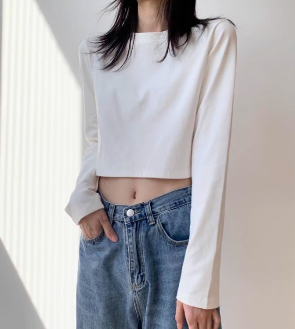 レディース トップス ロンT プルオーバー Tシャツ 長袖 Uネック スリム 細身 ストレート 肌見せ かわいい 大人可愛い きれいめ シンプル カジュアル 上品 おしゃれ かっこいい エキゾチック こなれ感 ラフ 無地 春 夏 デート お出かけ プチプラ 普段使い 着回し モテ 清楚 トレンド 白 ホワイト 黒 ブラック へそ出し ショート丈