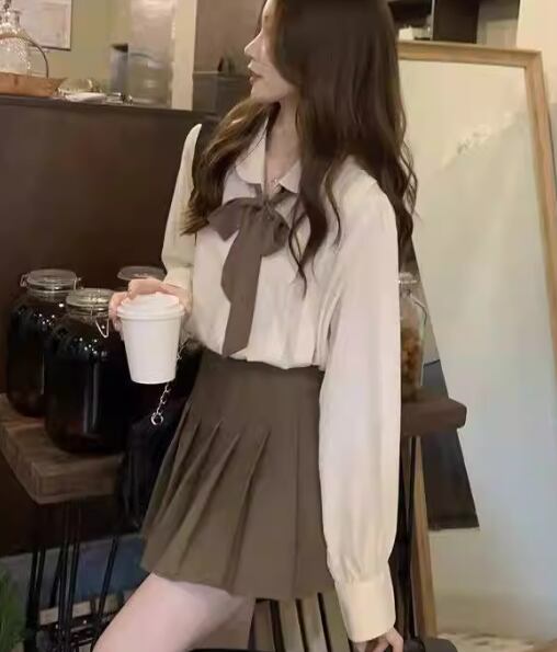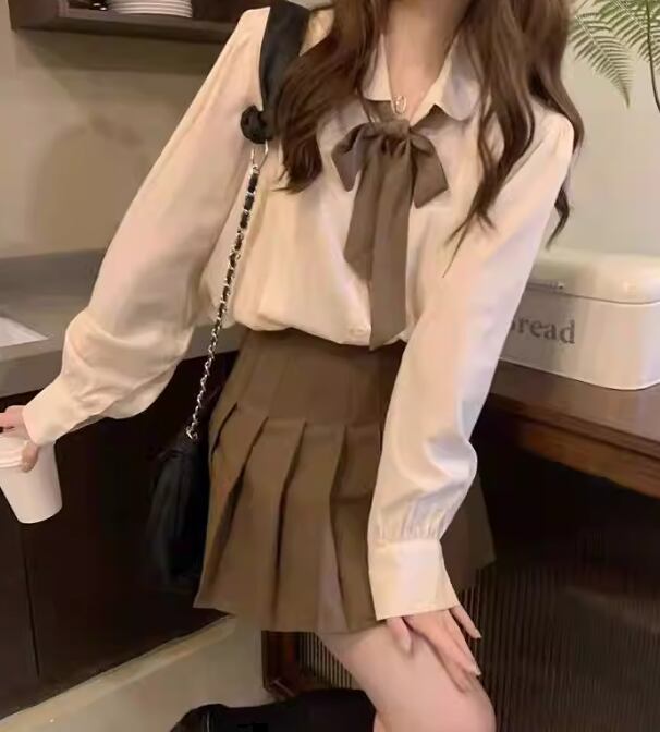 レディース シャツ ブラウス 長袖 襟付き リボン かわいい 大人可愛い きれいめ シンプル カジュアル 上品 おしゃれ かっこいい エキゾチック こなれ感 ラフ カレッジ風 学生風 無地 春 夏 デート お出かけ プチプラ 普段使い 着回し モテ 清楚 トレンド 白 ホワイト クリーム