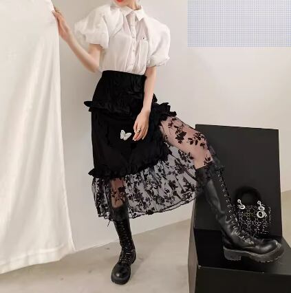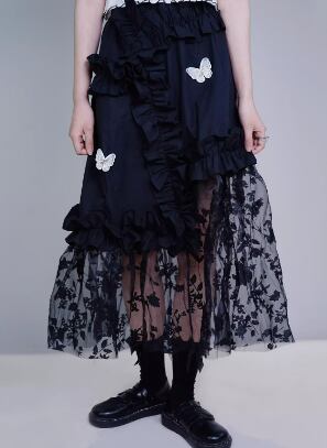 レディース スカート フレア ティアード 膝下 ミモレ ロング 肌見せ フレア セミフレア Aライン 刺繍 チュール リブ かわいい 大人可愛い きれいめ シンプル カジュアル 上品 おしゃれ かっこいい エキゾチック こなれ感 ラフ ラブリー キュート 蝶 オールシーズン 通勤 学生 学校 デート お出かけ 韓国 オルチャン コーデ 楽ちん 体型カバー 美脚 プチプラ 普段使い 着回し モテ 清楚 トレンド S M 黒 ブラック
