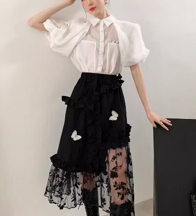 エキゾチックで可愛い蝶々の刺繍が特徴のチュールスカート。フレアなデザインで女性らしさを演出し、膝下丈で大人っぽい印象も叶えます。チュール素材が軽やかに揺れるたび、周りの視線をひとり占め。シンプルなトップスとの相性も抜群で、どんなシーンでも活躍する1着です。