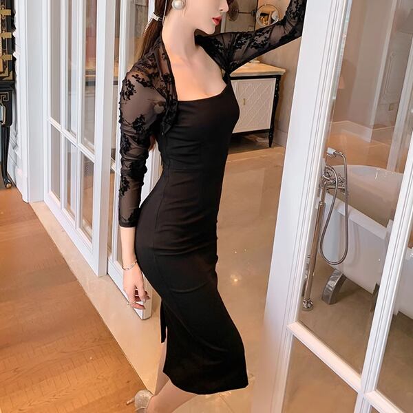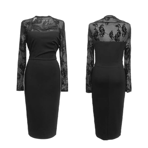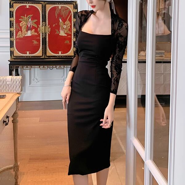 ヘップバーン風エレガントとモダンなデザイン、リトルブラックドレス。スクエアネックとメッシュの長袖に、ミッドレングス&スリムフィットなデザイン。品のある洗練されたシルエットを魅せてくれます。インナースカートがラインを美しく包み、安定したヒップカバー。クラシックな魅力とモダンなスタイルの融合。自信を持ってオススメします。
