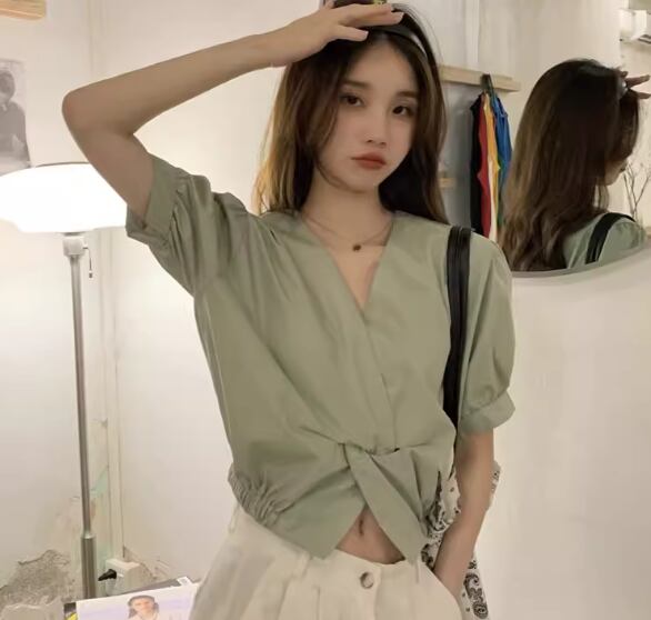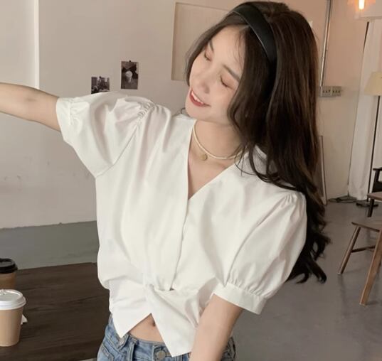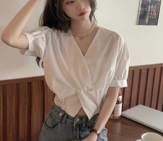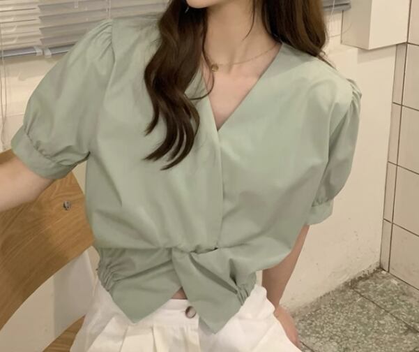 レディース トップス カットソー プルオーバー ショート 半袖 パフスリーブ Vネック カシュクール ストレート かわいい 大人可愛い きれいめ シンプル カジュアル おしゃれ かっこいい ラフ ボーイッシュ ルーズ クール 抜け感 ラグジュアリー アクティブ ナチュラル 清潔感 爽やか ハンサム シック 高級感 スタイリッシュ 無地 夏 10代 20代 学生 デート お出かけ 普段使い 着回し トレンド 流行 S M L ゆったり ホワイト グリーン