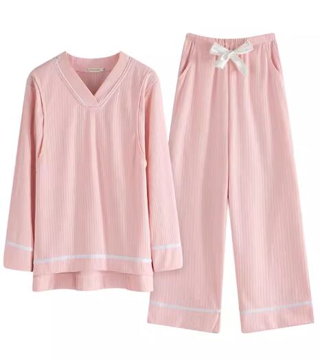 二点セット 上下セット ツーピース レディース ママ お母さん 妊婦さん パジャマ セットアップ マタニティウェア フルレングス 長袖 Vネック フェミニン リボン ウエストゴム 薄手 綿 コットン かわいい 大人可愛い きれいめ シンプル カジュアル 上品 おしゃれ レトロ ラフ ガーリー キュート ナチュラル リラックス シック 高級感 無地 春 秋 お泊まり 普段使い 清楚 M L XL 大きいサイズ ホワイト ピンク