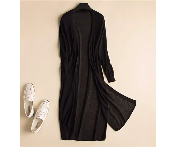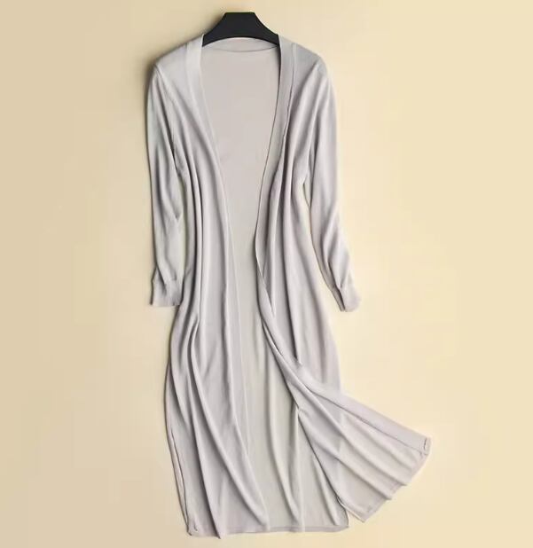 上品で落ち着いた色味が大人っぽいロング丈の七分袖カーディガン。