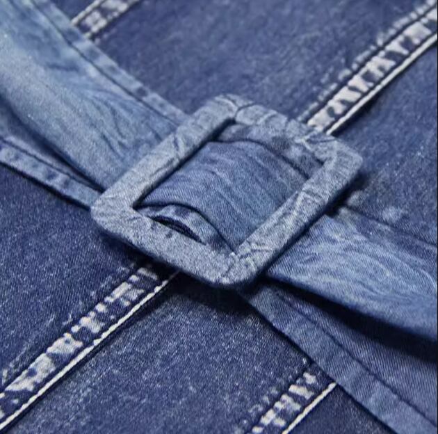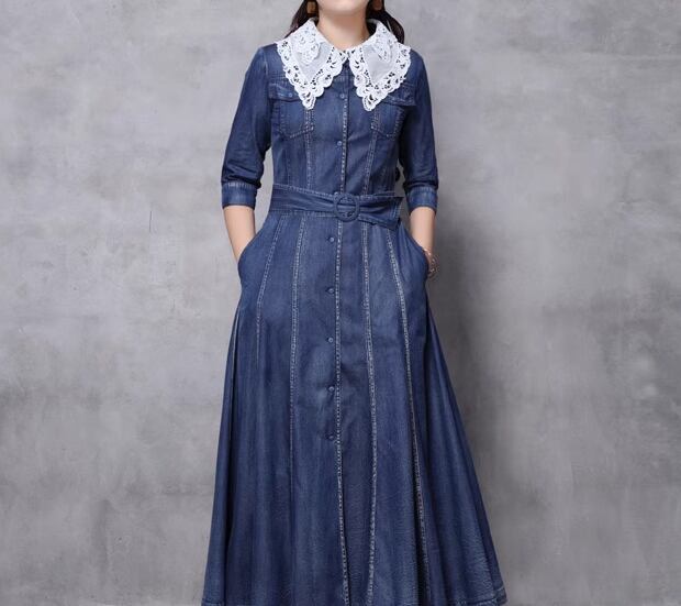 レディース ワンピース デニム ロング 5分袖 襟付き ポロカラー Aライン フェミニン レース ベルト ウエストマーク ボタン かわいい きれいめ カジュアル 上品 おしゃれ レトロ ガーリー エレガント ラブリー キュート ラグジュアリー 豪華 シック 高級感 華やか 無地 夏 10代 20代 学生 デート お出かけ 普段使い 清楚 フリーサイズ ブルー