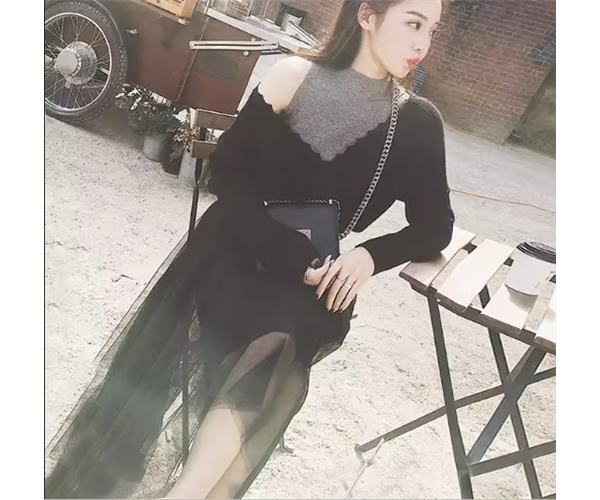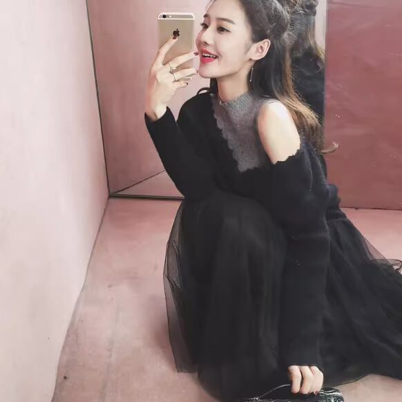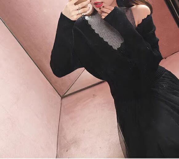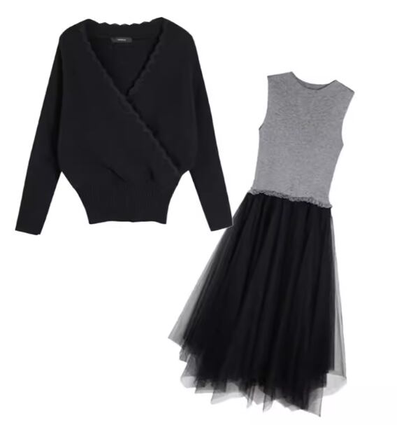 二点セット レディース トップス ワンピース ニット プルオーバー アンサンブル ロング フレア Aライン チュール ハイウエスト かわいい 大人可愛い シンプル カジュアル おしゃれ こなれ感 ガーリー 個性的 エレガント キュート ラグジュアリー シック 高級感 華やか フェアリー 無地 秋 冬 デート お出かけ 重ね着 普段使い 着回し レイヤード S M L ブラック