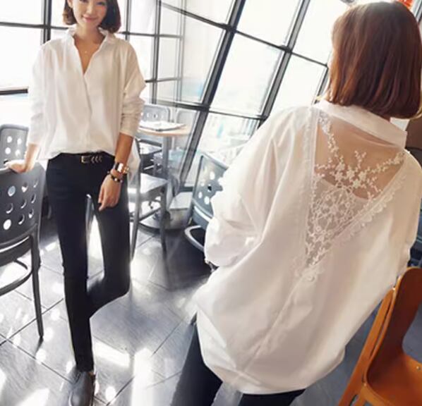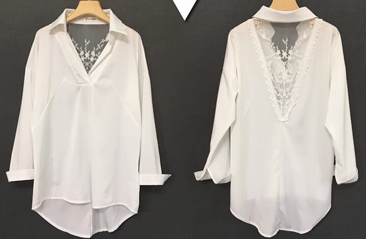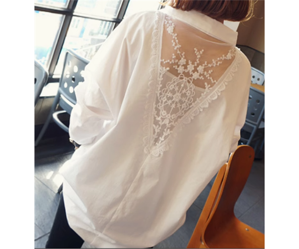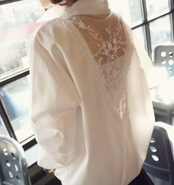 透け感のあるレースが上品でエレガントな長袖シャツ。