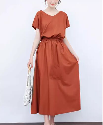 レディース ワンピース プルオーバー ロング マキシ 半袖 ボリューム袖 ラグラン ランタンスリーブ Vネック フェミニン ウエストマーク ウエストゴム かわいい 大人可愛い きれいめ シンプル カジュアル 上品 おしゃれ レトロ ガーリー エレガント キュート ナチュラル シック 高級感 優しい 穏やか 無地 夏 デート お出かけ 体型カバー 普段使い 清楚 M L XL 大きいサイズ ゆったり ゆる 大きめ オーバーサイズ ブラック オフホワイト オレンジ ネイビー グリーン