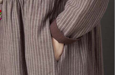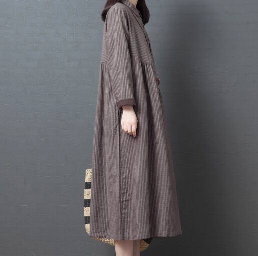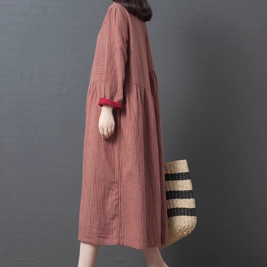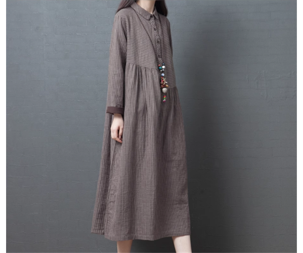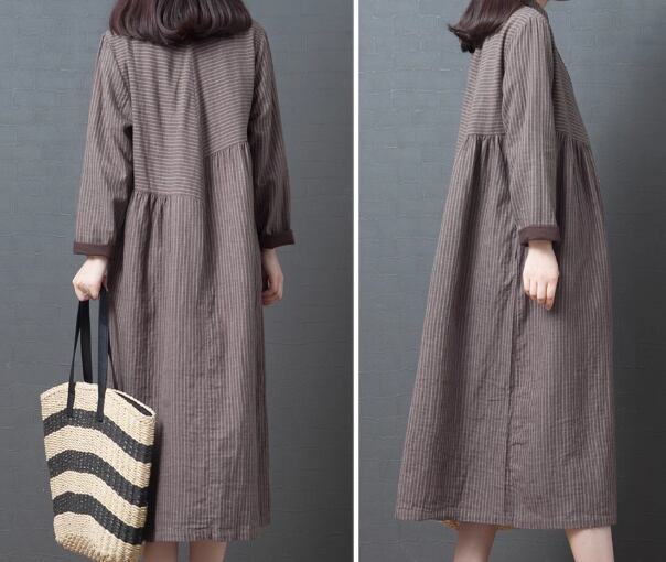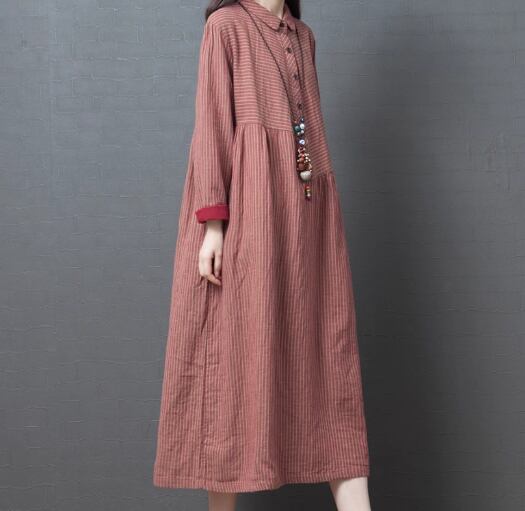 レディース ワンピース プルオーバー 膝下 ミモレ ロング 長袖 襟付き ポロカラー フェミニン ポケット ボタン リネン コットン かわいい 大人可愛い きれいめ カジュアル 上品 おしゃれ レトロ ガーリー ルーズ 個性的 キュート クラシカル ナチュラル 知的 シック 高級感 ボーダー ストライプ 春 デート お出かけ 韓国 体型カバー 普段使い 清楚 M L XL 大きいサイズ ゆったり グレー レッド