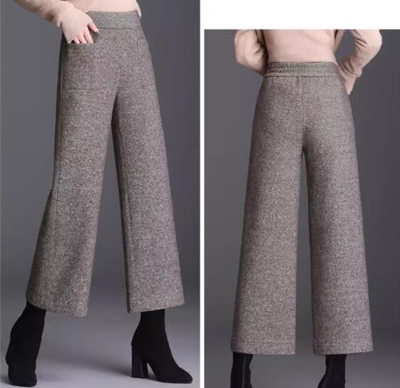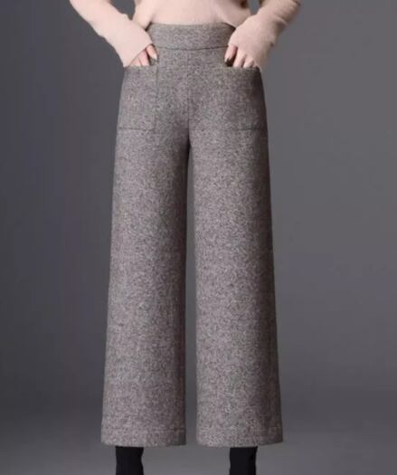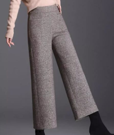 レディース パンツ ボトムス ウール 9分丈 アンクル丈 ワイド ストレート フェミニン ポケット ハイウエスト ウエストゴム 大人可愛い きれいめ シンプル カジュアル 上品 おしゃれ かっこいい こなれ感 ボーイッシュ クール エレガント 抜け感 ラグジュアリー ナチュラル 知的 ハンサム シック 高級感 スタイリッシュ 無地 秋 冬 デート お出かけ 楽ちん 美脚 脚長 普段使い 着回し M L XL 大きいサイズ ブラウン グレー
