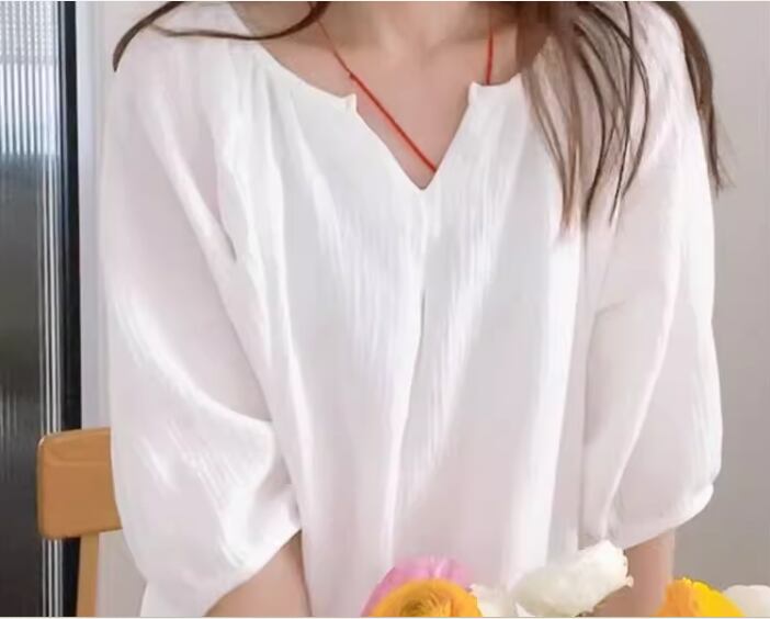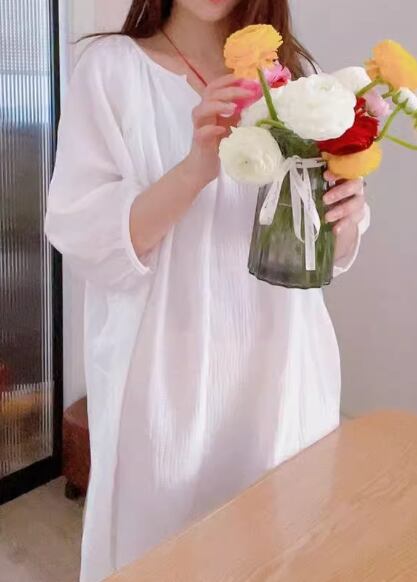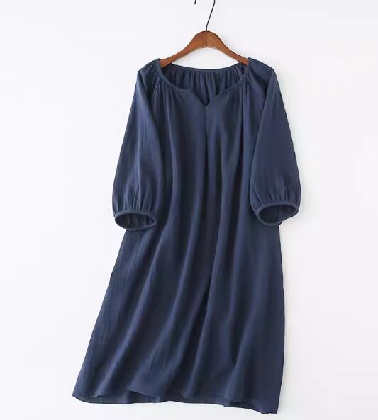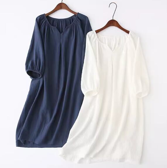 レディース ワンピース ルームウェア パジャマ プルオーバー 膝丈 ミドル丈 7分袖 Vネック フェミニン フリル 綿 コットン かわいい 大人可愛い きれいめ シンプル カジュアル 上品 おしゃれ レトロ ラフ ガーリー ルーズ エレガント キュート ナチュラル リラックス シック 高級感 優しい 穏やか 無地 春 夏 お泊まり 体型カバー 普段使い 清楚 M L ゆったり ホワイト ネイビー パープル
