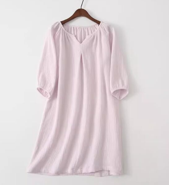 上品で落ち着いたカラーとシンプルで洗練されたデザインが大人可愛いワンピースタイプのパジャマ。