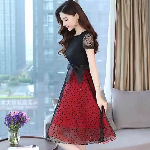 レディース ドレス パーティードレス ウェディング パーティー 結婚式 二次会 披露宴 膝下 ミモレ 半袖 ラウンドネック Aライン レース ウエストマーク ウエストリボン 切り替えデザイン ドッキング ハイウエスト シフォン 可愛い きれいめ 大人可愛い 上品 おしゃれ キュート ガーリー エレガント 清楚 シック ラグジュアリー 高級感 フェミニン 女性らしい フェアリー ドット 水玉 イベント ホテル レストラン デート 食事会 会食 高見え 女子会 S M L XL ホワイト ブラック レッド