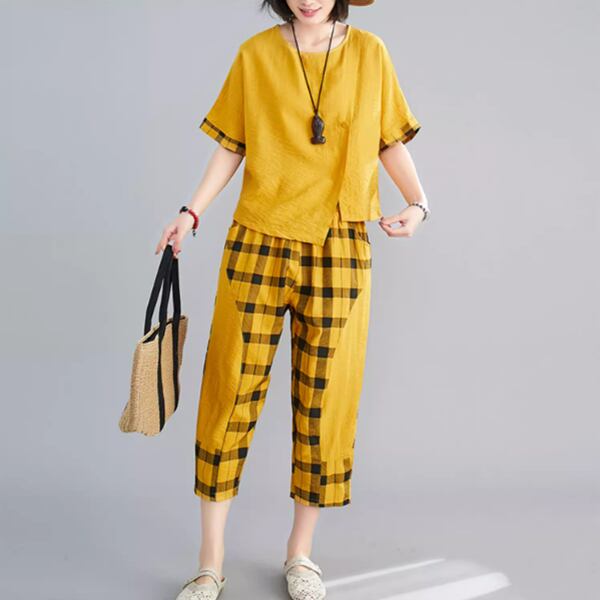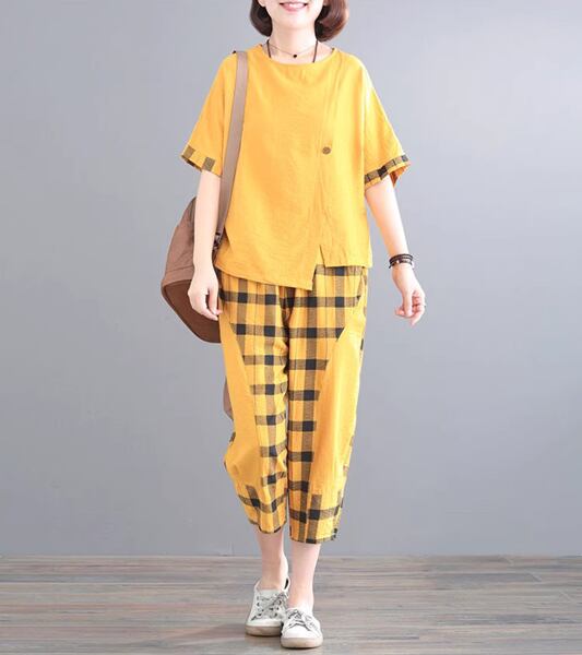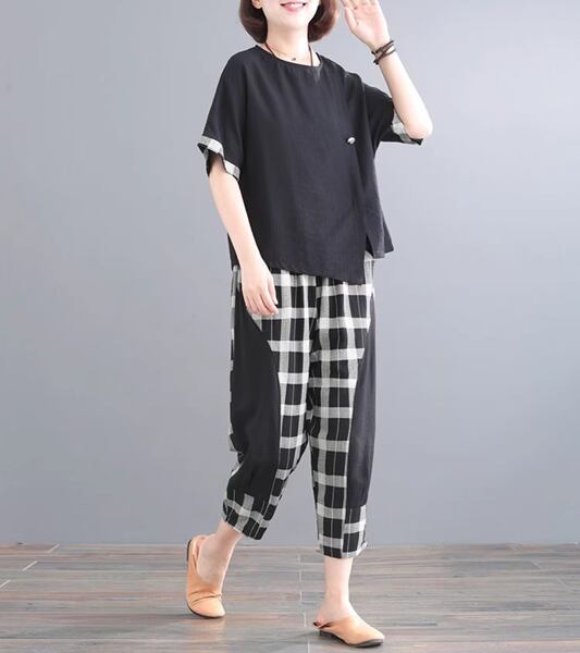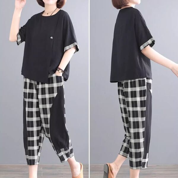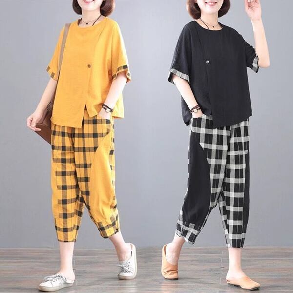 新しいファッションスーツが登場しました!西洋スタイルのチェック柄とルーズなデザインがリラックス感を演出します。プラスサイズの女性にもぴったりの夏向けカジュアルスポーツスーツで、半袖の大きいサイズトップとハーレムパンツの2点セットです。快適な着心地とおしゃれなデザインで、夏の日常やアクティブなスポーツシーンで活躍します。