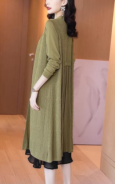 新しいニットカーディガンの登場です!春秋にぴったりの韓国スタイルで、ルーズなシルエットが特徴のジャカード編みのロングジャケットです。怠惰な雰囲気を演出するロングコートスタイルで、シンプルなデザインがアウターウェアとして活躍します。暖かく、おしゃれな一枚です。さまざまなシーンでお使いください。
