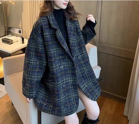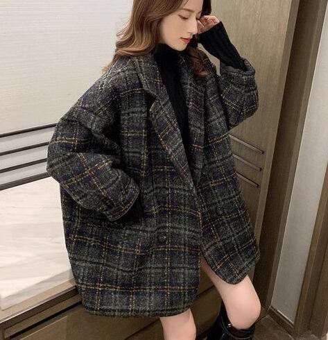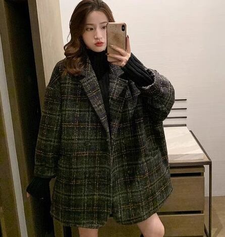 レディース ジャケット コート アウター 上着 ウール ミドル丈 長袖 襟付き スーツカラー ポケット ボタン 厚手 かわいい 大人可愛い きれいめ カジュアル 上品 おしゃれ かっこいい レトロ こなれ感 ボーイッシュ ルーズ クール エレガント ラグジュアリー クラシカル ハンサム シック 高級感 チェック 秋 冬 デート お出かけ 普段使い 着回し トレンド 流行 S M L XL 大きいサイズ ゆったり ゆる 大きめ オーバーサイズ ブラウン グリーン