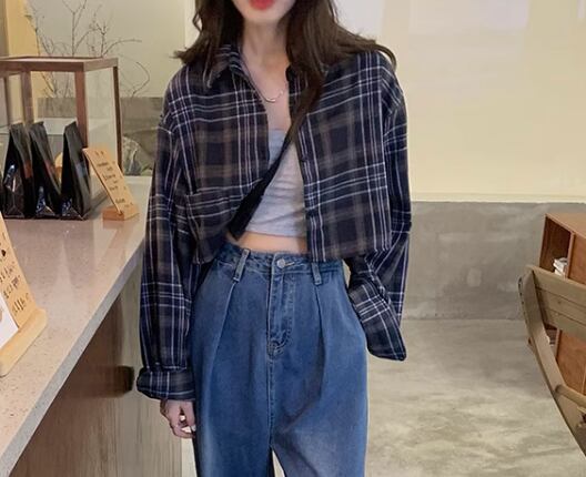 短めの丈感とボーイッシュなデザインがかっこいい長袖シャツ。