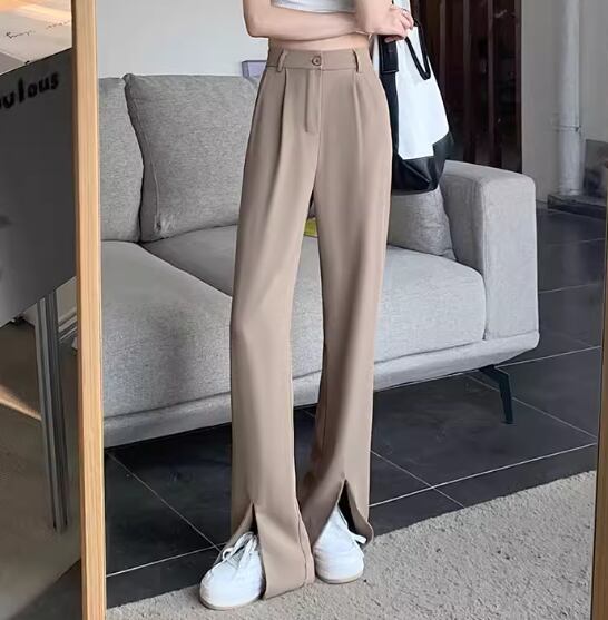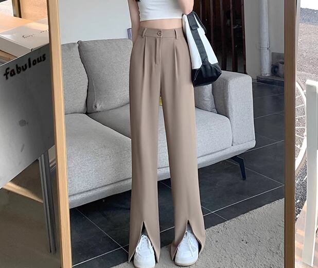 上品で落ち着いた色味が大人可愛いフルレングスのスリットパンツ。