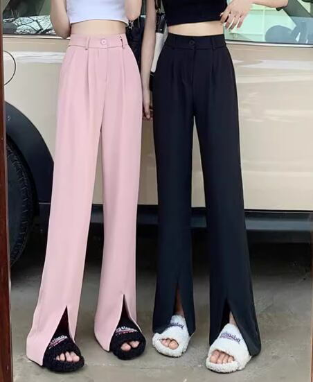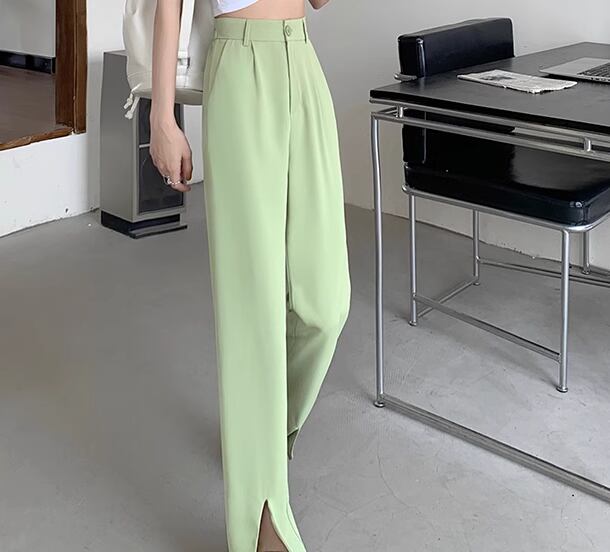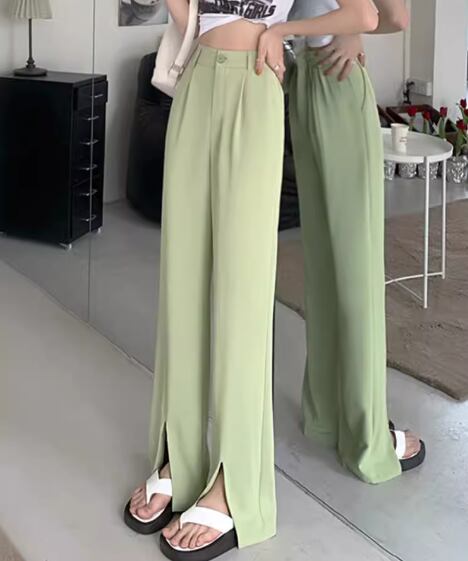 レディース パンツ ボトムス フルレングス スリム 細身 ストレート ドレープ スリット ハイウエスト ウエストゴム かわいい 大人可愛い きれいめ シンプル カジュアル 上品 おしゃれ かっこいい こなれ感 ボーイッシュ クール エレガント 抜け感 キュート ラグジュアリー ハンサム シック 高級感 スタイリッシュ 無地 夏 デート 美脚 脚長 普段使い 着回し S M L XL 大きいサイズ ブラック カーキ ピンク グリーン