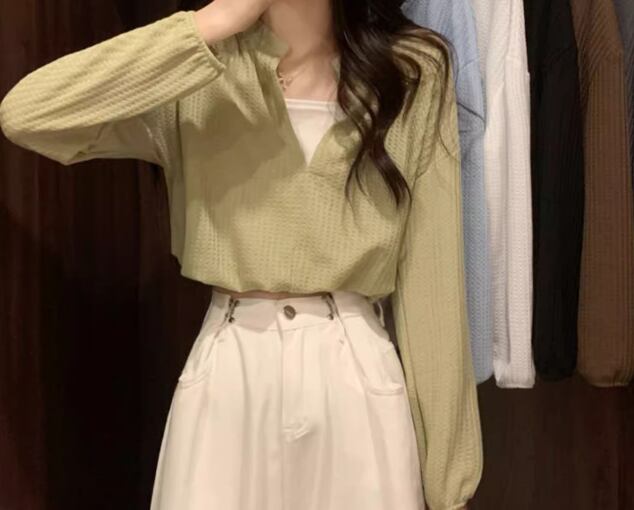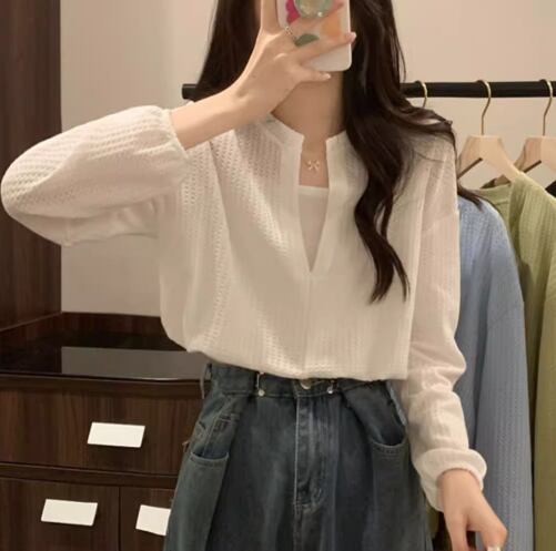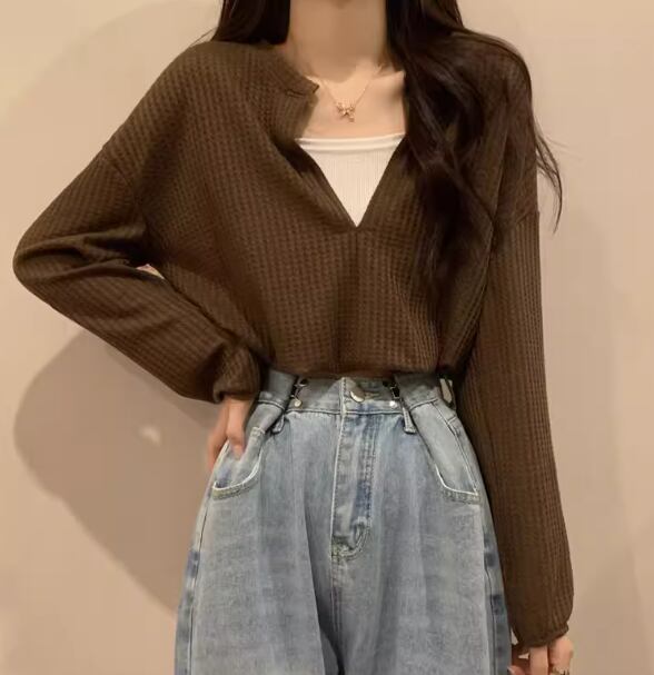 重ね着風 フェイクツーピース レディース トップス ニット セーター プルオーバー ショート クロップド丈 長袖 Vネック フェミニン かわいい 大人可愛い きれいめ シンプル カジュアル 上品 おしゃれ ラフ ガーリー ルーズ クール エレガント 抜け感 キュート 無地 春 デート お出かけ 重ね着 普段使い 着回し レイヤード トレンド 流行 S M L ゆったり ゆる 大きめ ホワイト ブラック ブラウン ブルー グリーン