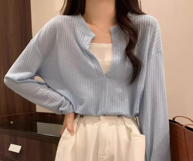白のインナーとニットを重ねてきているかのようなデザインなので難易度の高いレイヤードコーデを簡単に楽しめるアイテム!