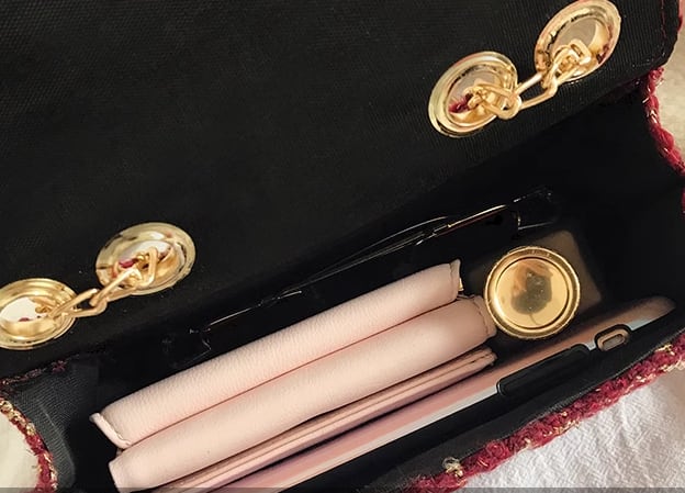 大きめのマグネットバックルとゴールドのチェーンがアクセントになっていておしゃれ!