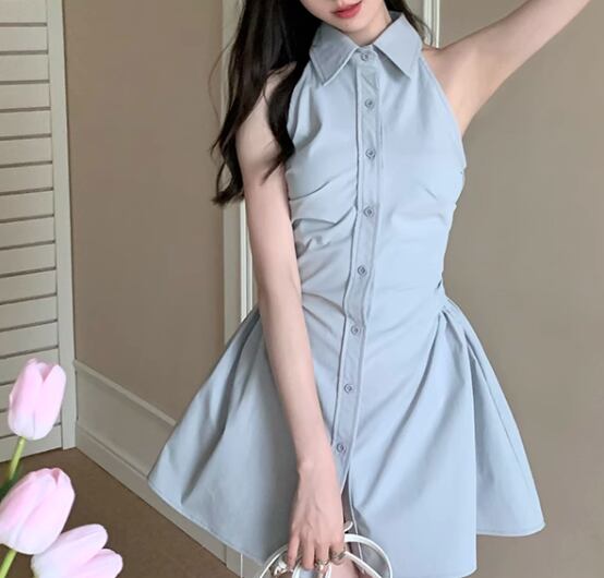 レディース ワンピース シャツワンピ ミニ ショート 袖なし ノースリーブ 襟付き ポロカラー タイト スリム 細身 Aライン フェミニン ハイウエスト 前開き ボタン かわいい 大人可愛い きれいめ シンプル カジュアル 上品 おしゃれ こなれ感 ガーリー 抜け感 キュート ラグジュアリー セクシー 無地 夏 デート お出かけ 普段使い S M L 小さめ フィット ホワイト ブラック ピンク ブルー