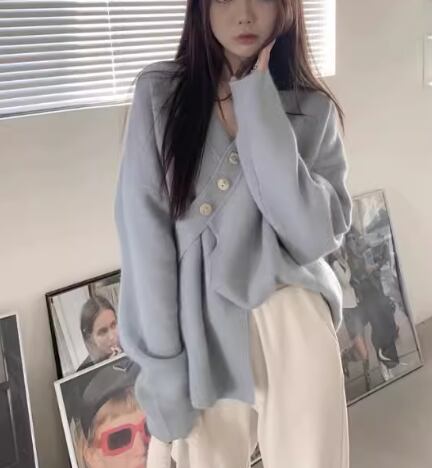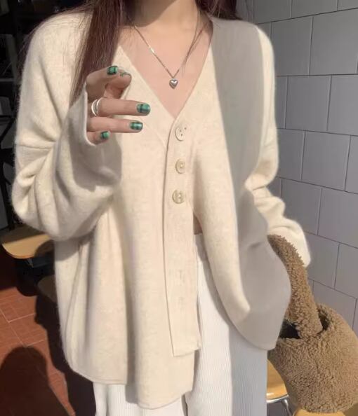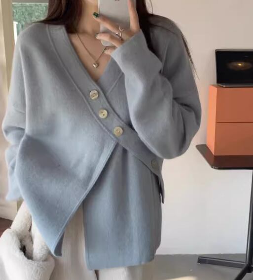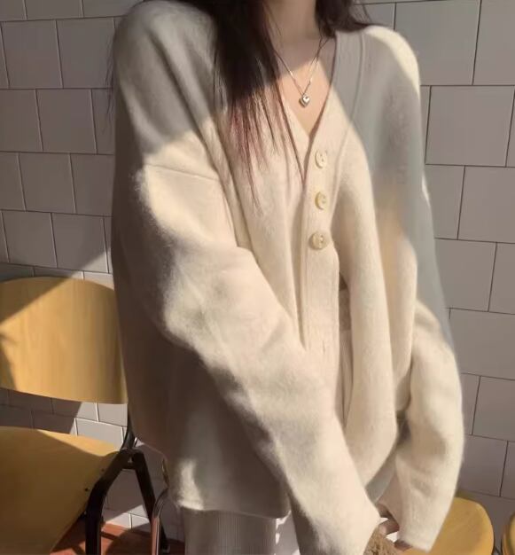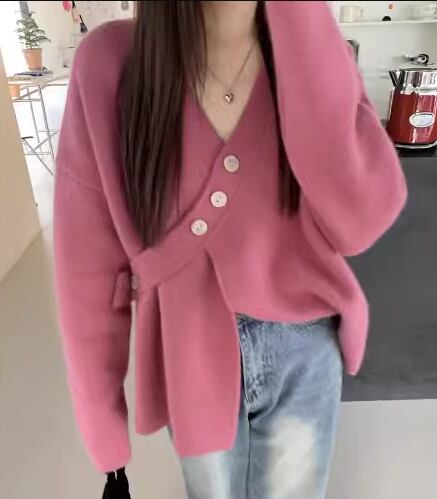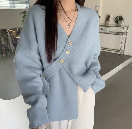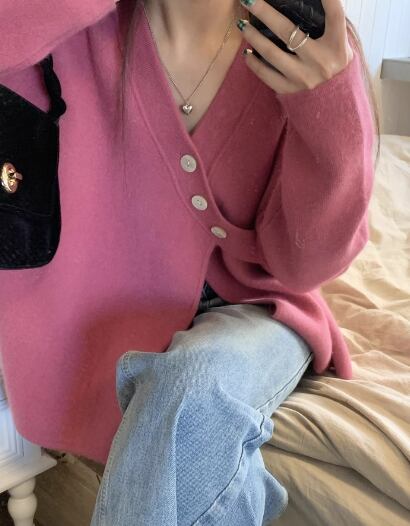 レディース トップス ニット セーター カーディガン ミドル丈 長袖 Vネック フェミニン ボタン 厚手 かわいい 大人可愛い きれいめ カジュアル おしゃれ ラフ ボーイッシュ ガーリー ルーズ 個性的 クール 存在感 キュート ラグジュアリー 高級感 芸術的 アーティスティック 無地 春 秋 冬 デート お出かけ 普段使い 着回し トレンド 流行 ゆったり ゆる フリーサイズ 大きめ オーバーサイズ ピンク ブルー アプリコット