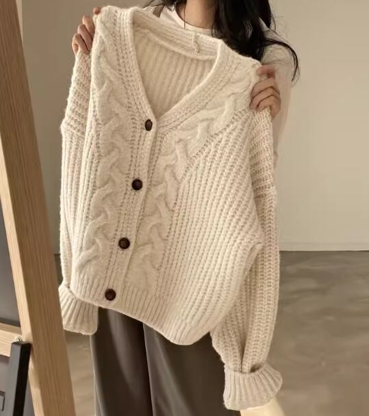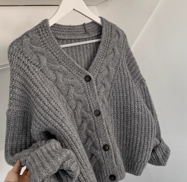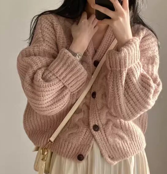 レディース トップス ニット カーディガン ショート 長袖 Vネック ボタン ケーブルニット かわいい 大人可愛い シンプル カジュアル 上品 おしゃれ レトロ こなれ感 ラフ ボーイッシュ ガーリー ルーズ クール エレガント キュート ラグジュアリー 秋 冬 デート お出かけ 普段使い 着回し モテ トレンド 流行 ゆったり ゆる フリーサイズ 大きめ オーバーサイズ グレー オフホワイト ピンク