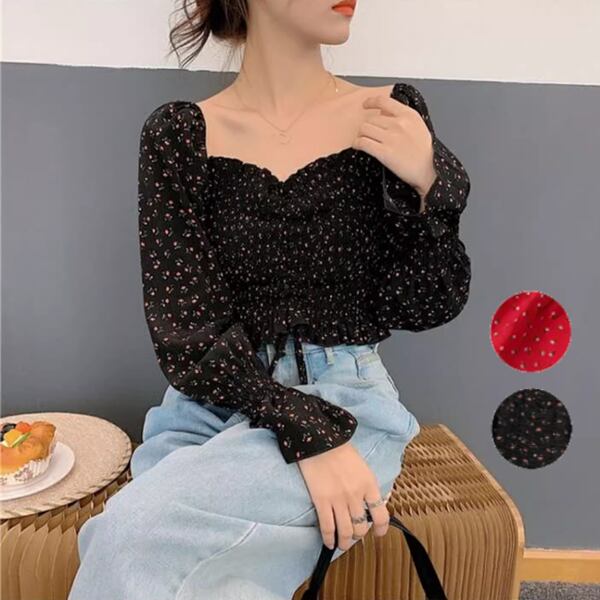 新しいフランス風のハイエンドなセクシーさを纏った花柄シフォン長袖シャツ!甘くてスパイシーな雰囲気を醸し出すワンショルダーのデザインが特徴で、ショート丈の巾着風ウェストがポイントです。春と秋の季節にぴったりのアイテムで、スクエアカラーが洗練された印象。トレンド感溢れるシフォンシャツは、今シーズンのおすすめアイテムです。