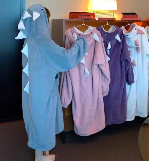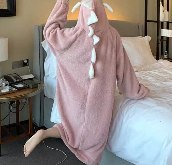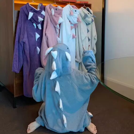 恐竜 レディース ワンピース ルームウェア パジャマ 部屋着 着ぐるみ ロング ミモレ 膝下 長袖 前開き フード フリース 厚手 ベルベット かわいい カジュアル おしゃれ ラフ 個性的 主役級 存在感 ラブリー キュート ラグジュアリー アクティブ ポップ ファンシー メルヘン リラックス 秋 冬 お泊まり 暖かい 防寒 普段使い S M L XL 大きいサイズ オフホワイト ピンク ブルー パープル