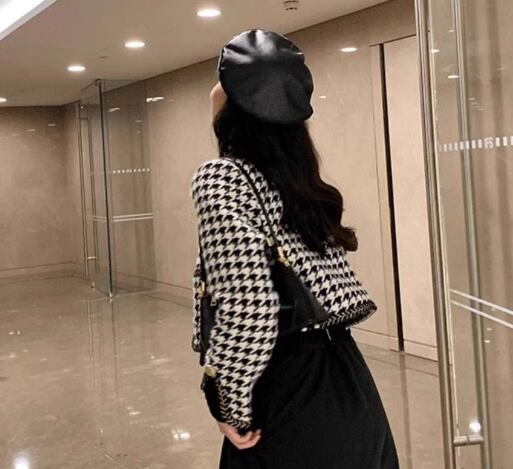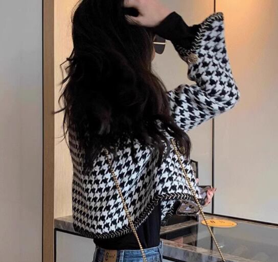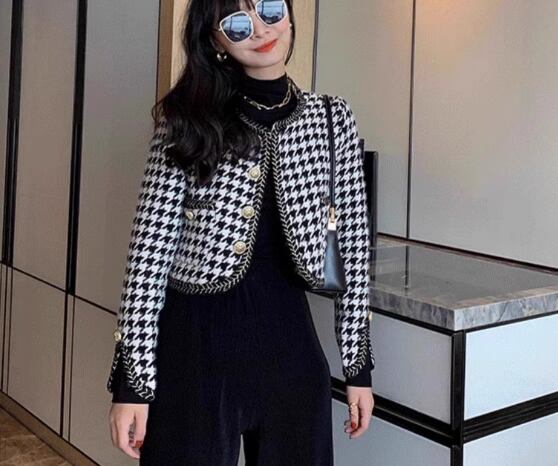 レディース トップス ジャケット カーディガン アウター 上着 羽織 前開き ショート クロップド丈 長袖 Vネック 襟なし ノーカラー ボタン 大人可愛い きれいめ カジュアル 上品 おしゃれ かっこいい レトロ こなれ感 クール エレガント ラグジュアリー クラシカル セレブリティ 知的 千鳥格子 秋 ママ OL デート お出かけ 普段使い 着回し S M L XL 大きいサイズ ブラック