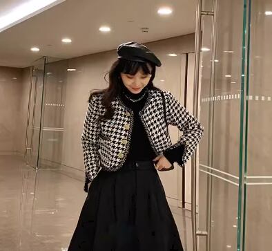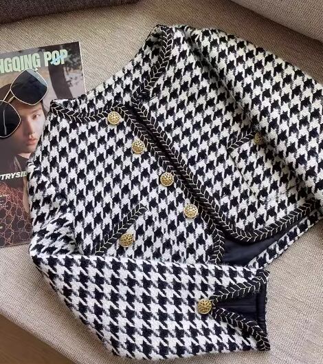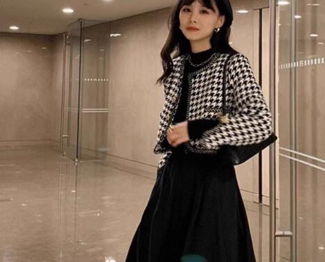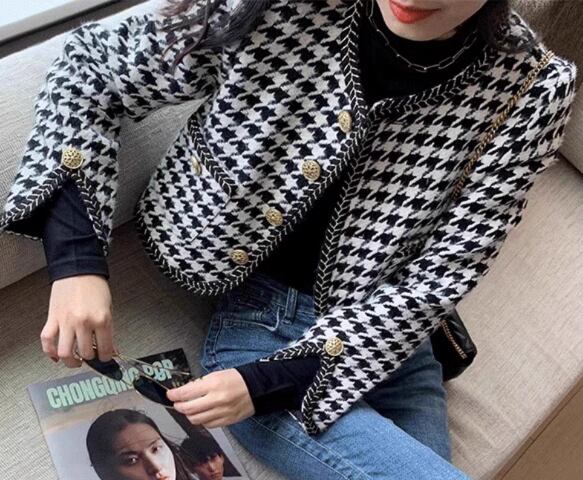 レトロで大人っぽい千鳥格子柄と短めの丈感がおしゃれなノーカラージャケット。
