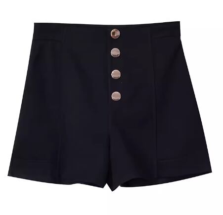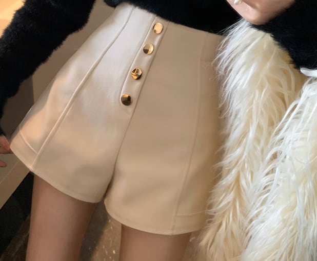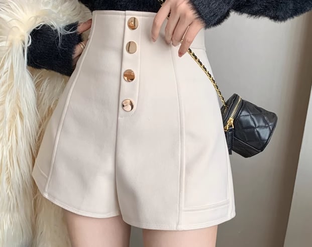 きれいなシルエットとゴールドのボタンがアクセントになっている大人可愛い雰囲気のショートパンツ。