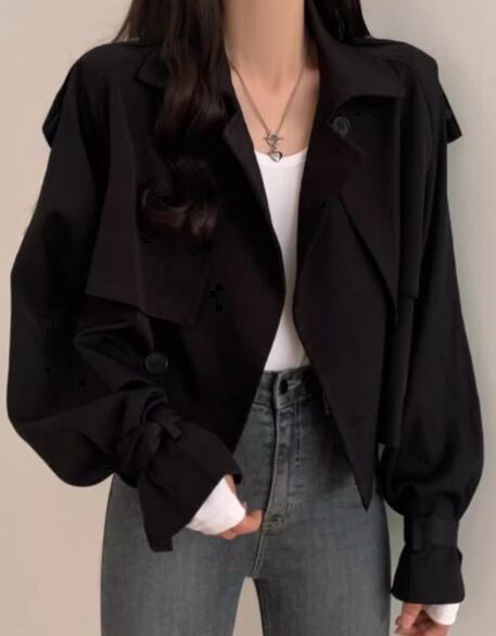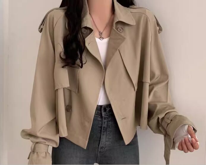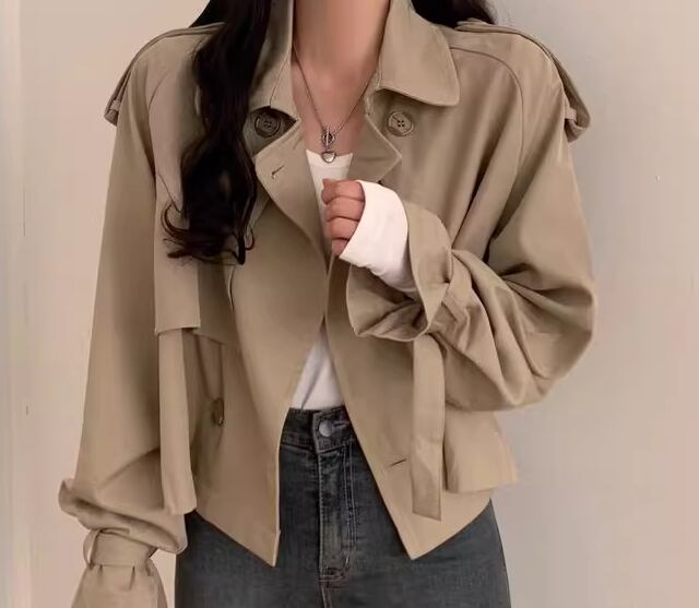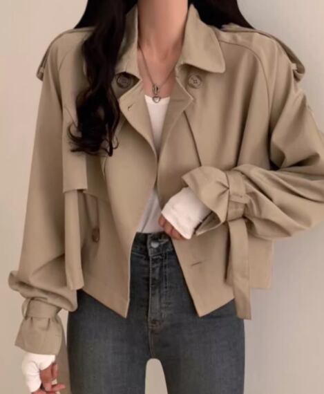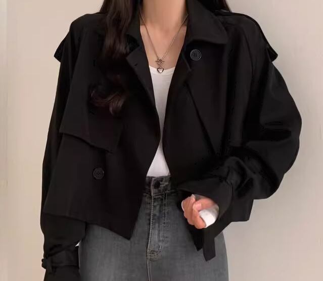 レディース コート アウター 上着 トレンチ ショート クロップド丈 長袖 襟付き スーツカラー ベルト ボタン 大人可愛い きれいめ シンプル カジュアル 上品 おしゃれ かっこいい こなれ感 ボーイッシュ ルーズ 個性的 クール エレガント 抜け感 ラグジュアリー 無地 秋 デート お出かけ 韓国 普段使い 着回し トレンド 流行 S M L XL ゆったり ゆる 大きめ オーバーサイズ ブラック カーキ