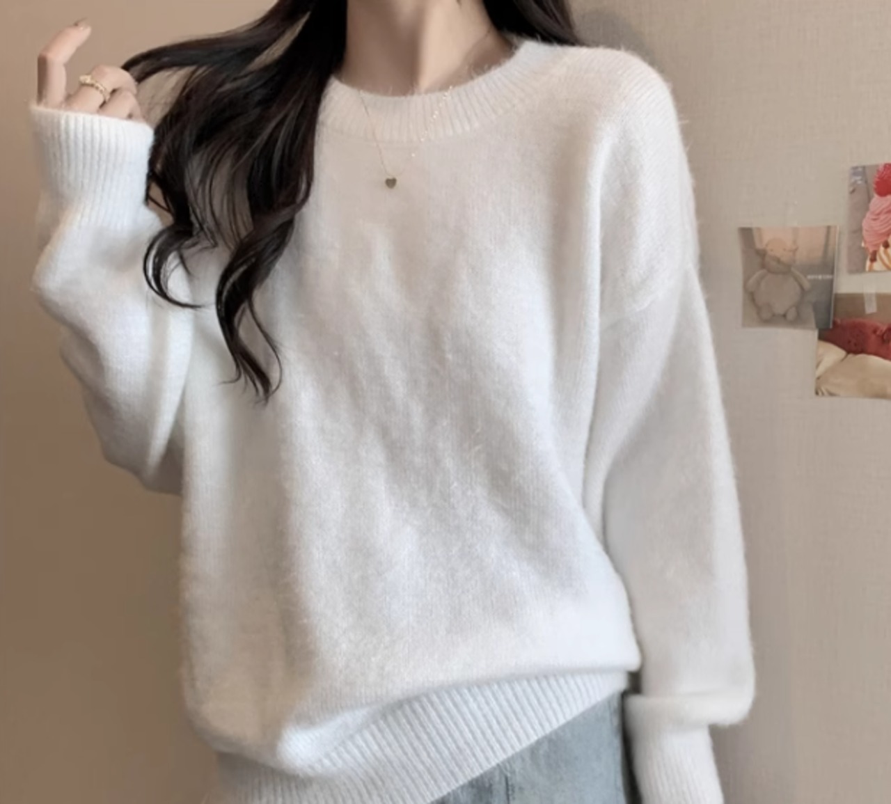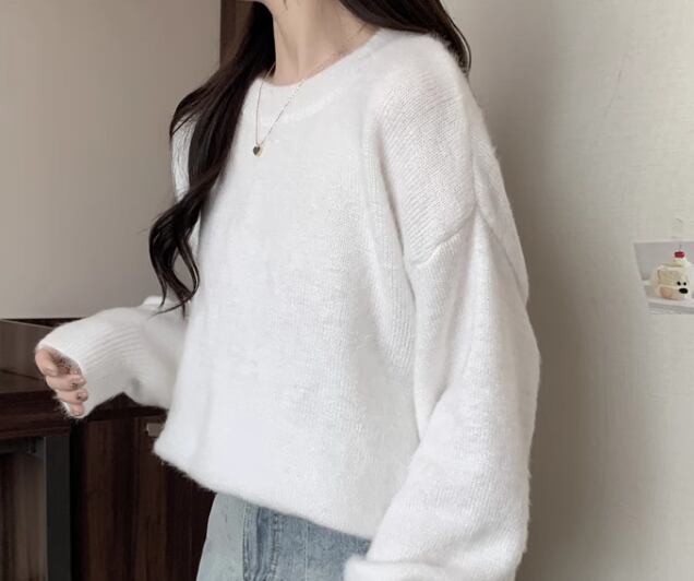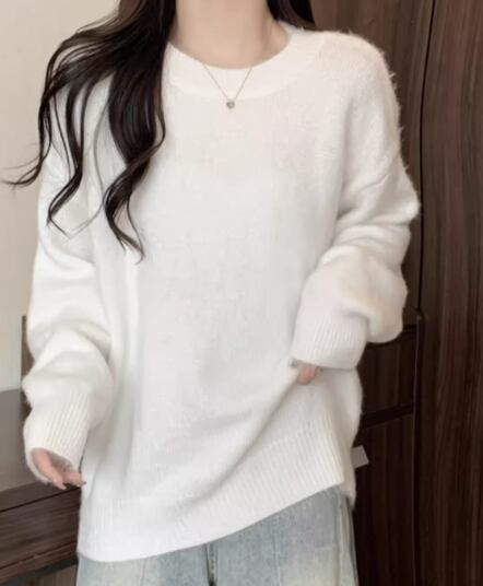 レディース トップス ニット セーター プルオーバー ミドル丈 長袖 ラウンドネック 厚手 かわいい 大人可愛い きれいめ シンプル カジュアル 上品 おしゃれ かっこいい レトロ ラフ ボーイッシュ ルーズ クール エレガント キュート ラグジュアリー ベーシック ナチュラル 無地 秋 冬 デート お出かけ 普段使い 着回し トレンド 流行 ゆったり ゆる フリーサイズ 大きめ オーバーサイズ ホワイト