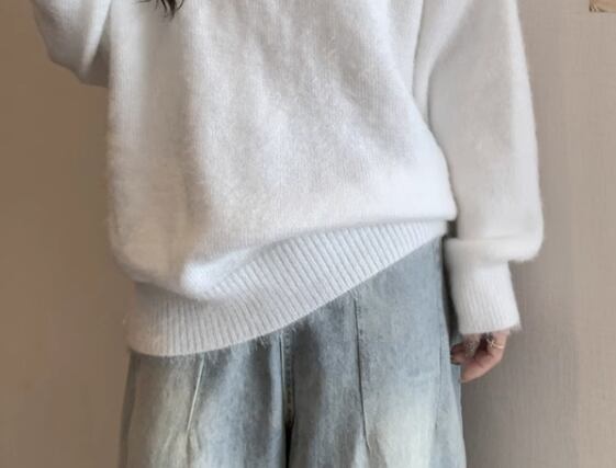 ゆるだぼなオーバーサイズが可愛い白のニットセーター。