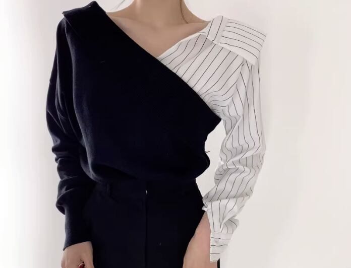 アシンメトリーなデザインがスタイリッシュでかっこいいモノトーンの長袖シャツ。