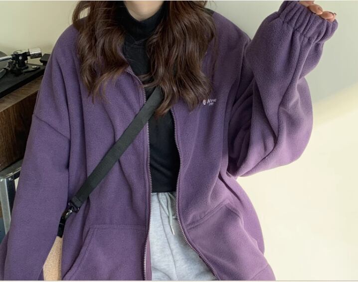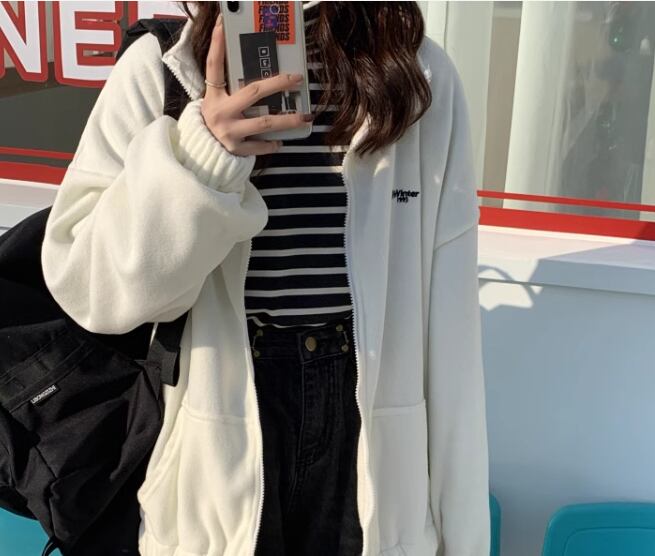 レディース パーカー スウェット ミドル丈 長袖 ファスナー 前開き ベルベット かわいい 大人可愛い シンプル カジュアル おしゃれ かっこいい レトロ ラフ メンズライク ボーイッシュ ルーズ クール 文字 テキスト 英語 ワンポイント 冬 デート お出かけ 暖かい 普段使い 着回し トレンド 流行 M L XL 大きいサイズ ゆったり ゆる 大きめ オーバーサイズ グレー オフホワイト グリーン パープル