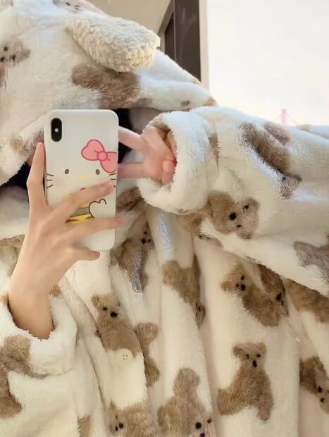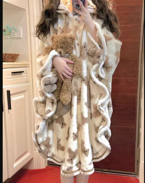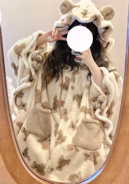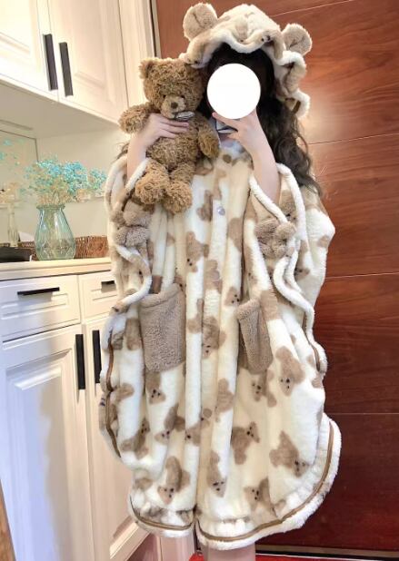 くま レディース ワンピース パジャマ 膝下 ミモレ 長袖 ファスナー ポケット フード 厚手 ベルベット かわいい カジュアル おしゃれ ラフ ガーリー 個性的 存在感 ラブリー キュート ラグジュアリー アクティブ ポップ ファンシー メルヘン リラックス 高級感 優しい 穏やか プリント くま柄 冬 10代 20代 学生 お泊まり 暖かい 普段使い S M L XL 大きいサイズ ブラウン