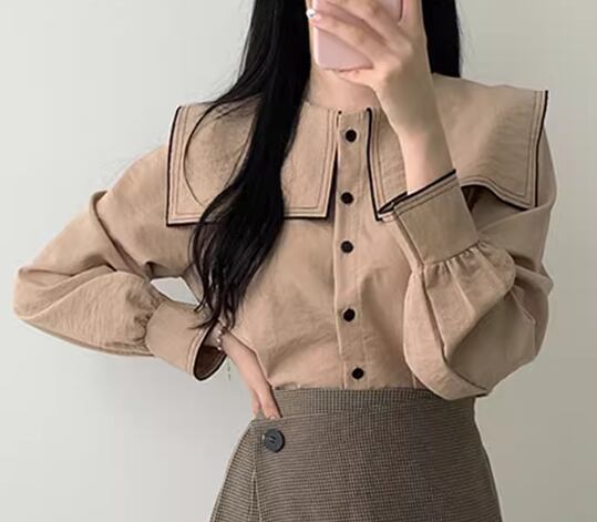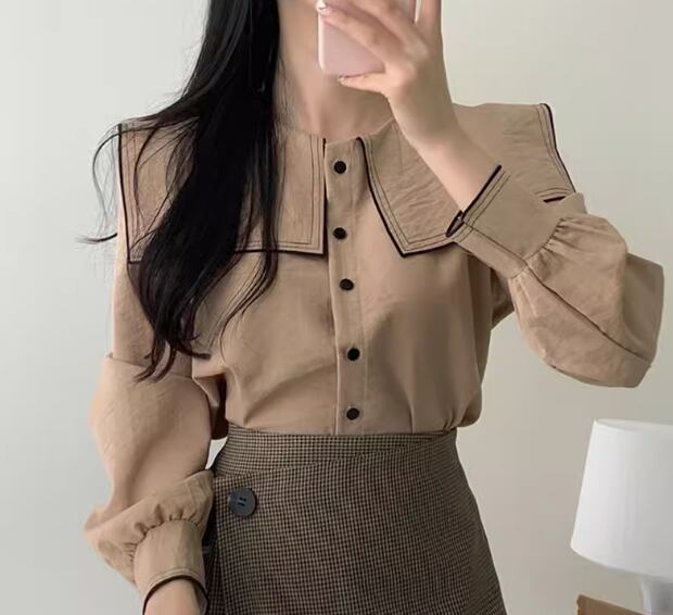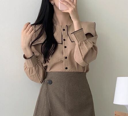 レディース トップス シャツ ミドル丈 長袖 襟付き フェミニン 前開き 異国風 ボタン かわいい 大人可愛い きれいめ シンプル カジュアル 上品 おしゃれ レトロ ガーリー 個性的 エレガント キュート ラグジュアリー クラシカル ナチュラル 知的 シック 高級感 スタイリッシュ 優しい 穏やか 無地 春 デート お出かけ 韓国 普段使い 着回し 清楚 S M L XL 大きいサイズ ブラウン