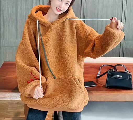 レディース トップス プルオーバー パーカー ウール ミドル丈 長袖 もこもこ ふわふわ ポケット 厚手 ベルベット かわいい 大人可愛い シンプル カジュアル おしゃれ かっこいい ラフ ボーイッシュ ルーズ 個性的 クール 存在感 キュート ラグジュアリー 豪華 冬 デート お出かけ 暖かい 防寒 普段使い 着回し トレンド 流行 M L XL 大きいサイズ ゆったり ゆる 大きめ オーバーサイズ ブラウン アプリコット