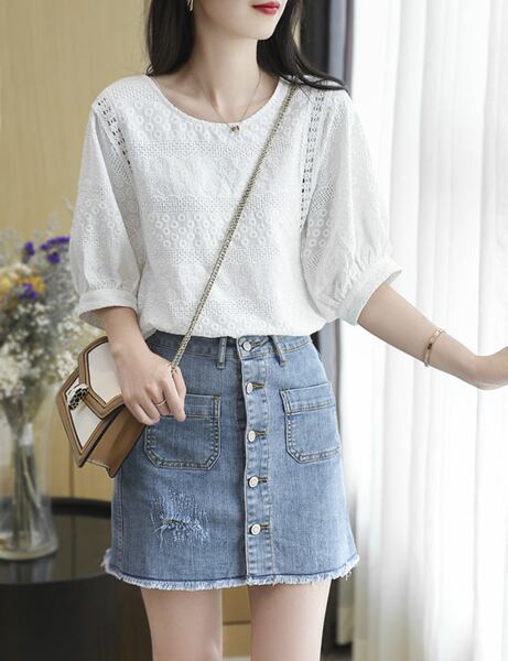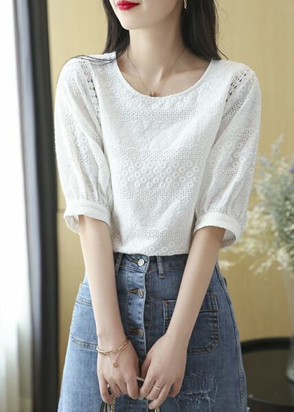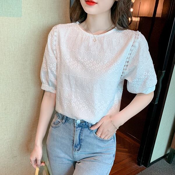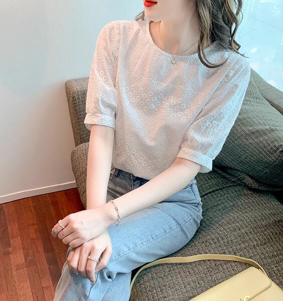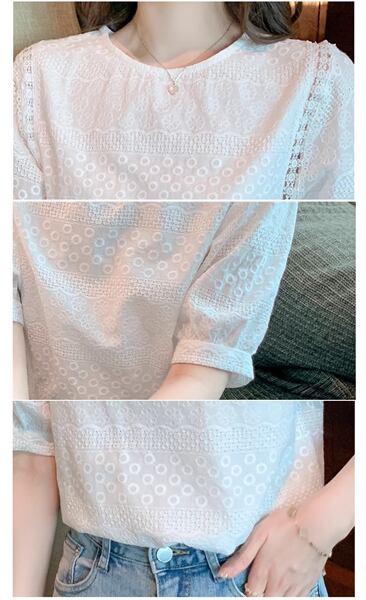 半袖シフォンTシャツ レディース トップス シャツ カットソー Tシャツ 半袖 パフスリーブ ラウンドネック ワイド ストレート レース シフォン 綿 刺繡 大人可愛い シンプル 上品 おしゃれ ガーリー ルーズ エレガント モダン フォーマル 爽やか 涼しげ フリル 立体模様 春 夏 秋 20代 30代 オフィス 通勤 イベント ガーデン ショッピング ドライブ コーデ 普段使い お腹カバー スタイルアップ ゆる