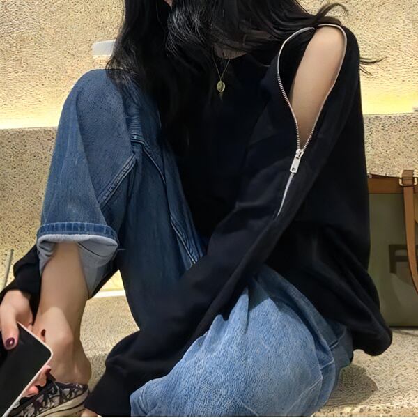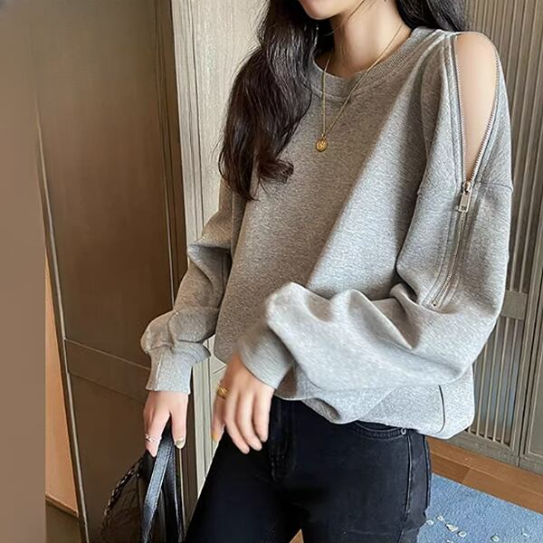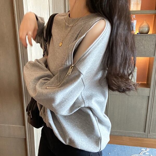 オンラインセレブのようなスタイルを手に入れましょう。ジッパー付きのオフショルダーがセクシーな長袖スウェットです。若々しさを引き出すデザインで、トレンディ。快適さとスタイルを両立させ、カジュアルながらも洗練された印象を与えます。ネットセレブ愛用アイテムは、あなたのファッションセンスを輝かせます。