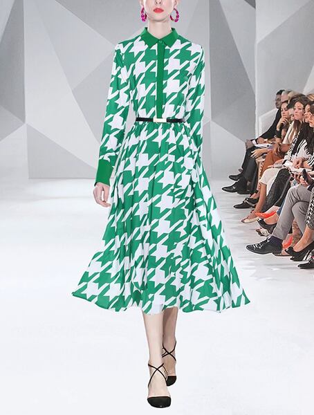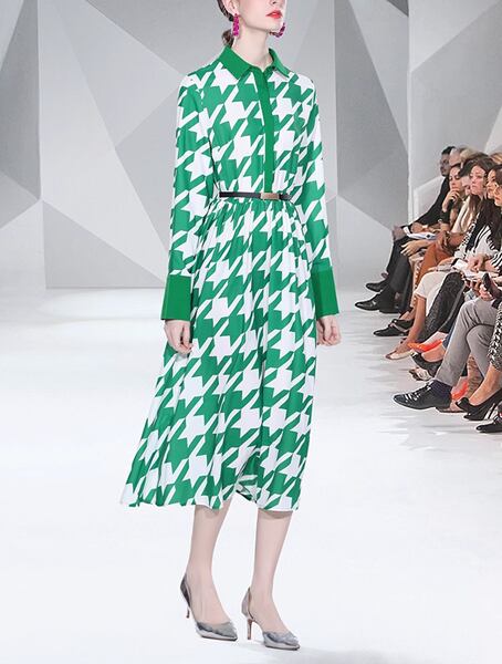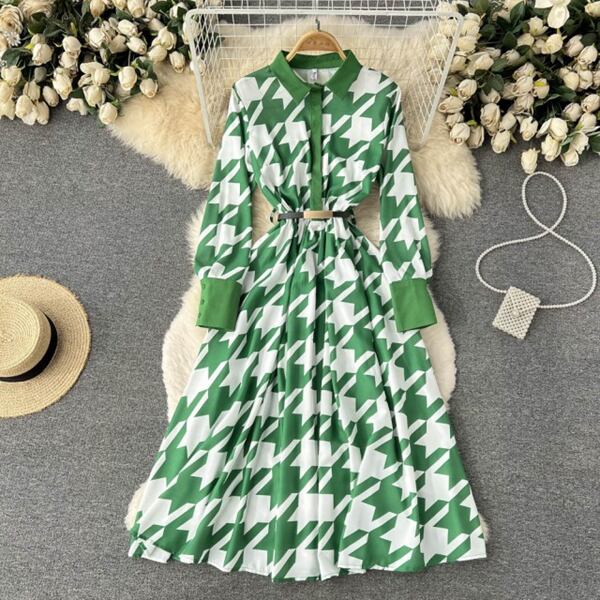 2カラー 千鳥格子プリント/ミッドレングスドレス レディース ワンピース ドレス アウター 膝下 ミモレ ミドル丈 長袖 ラウンドネック ステンカラー フレア スリム Aライン フォーマル スマート フェミニン ベルト ウエストマーク ハイウエスト 大人可愛い きれいめ シンプル 上品 おしゃれ クール エレガント 清潔感 爽やか 千鳥格子 春 秋 プレゼン 20代 30代 通勤 イベント レストラン 女子会 ショッピング コンサート カフェ コーデ トレンド インスタ映え フィット