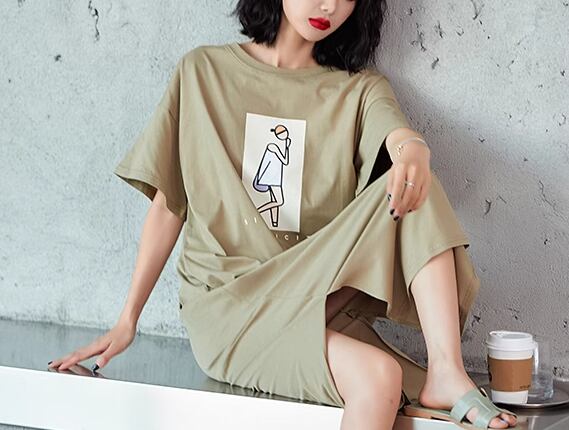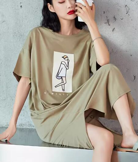 レディース ワンピース ルームウェア パジャマ プルオーバー ロング 半袖 ラウンドネック スリット 薄手 かわいい 大人可愛い カジュアル おしゃれ レトロ ラフ ルーズ キュート ナチュラル リラックス シック 高級感 芸術的 アーティスティック プリント 夏 デート お出かけ 楽ちん 体型カバー 普段使い トレンド 流行 M L XL 大きいサイズ ゆったり ゆる 大きめ オーバーサイズ グリーン