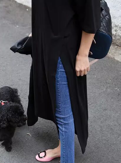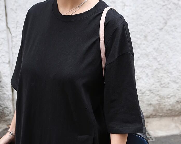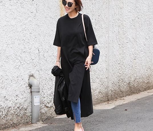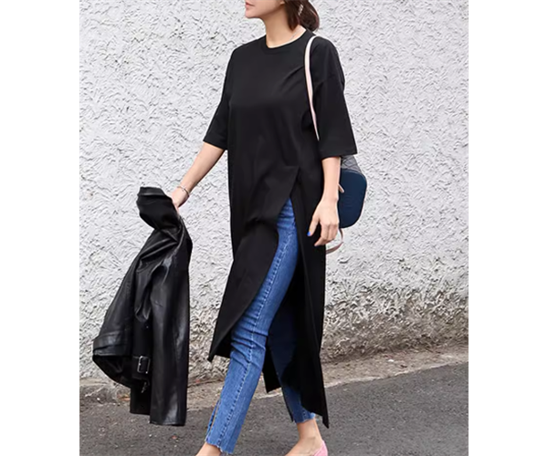 レディース ワンピース ロンT プルオーバー Tシャツ ロング 半袖 ラウンドネック スリット 大人可愛い シンプル カジュアル おしゃれ かっこいい レトロ こなれ感 ラフ ボーイッシュ ルーズ クール ナチュラル ハンサム シック 無地 夏 デート お出かけ 重ね着 韓国 楽ちん 体型カバー 普段使い 着回し レイヤード トレンド 流行 ゆったり ゆる フリーサイズ 大きめ オーバーサイズ ブラック